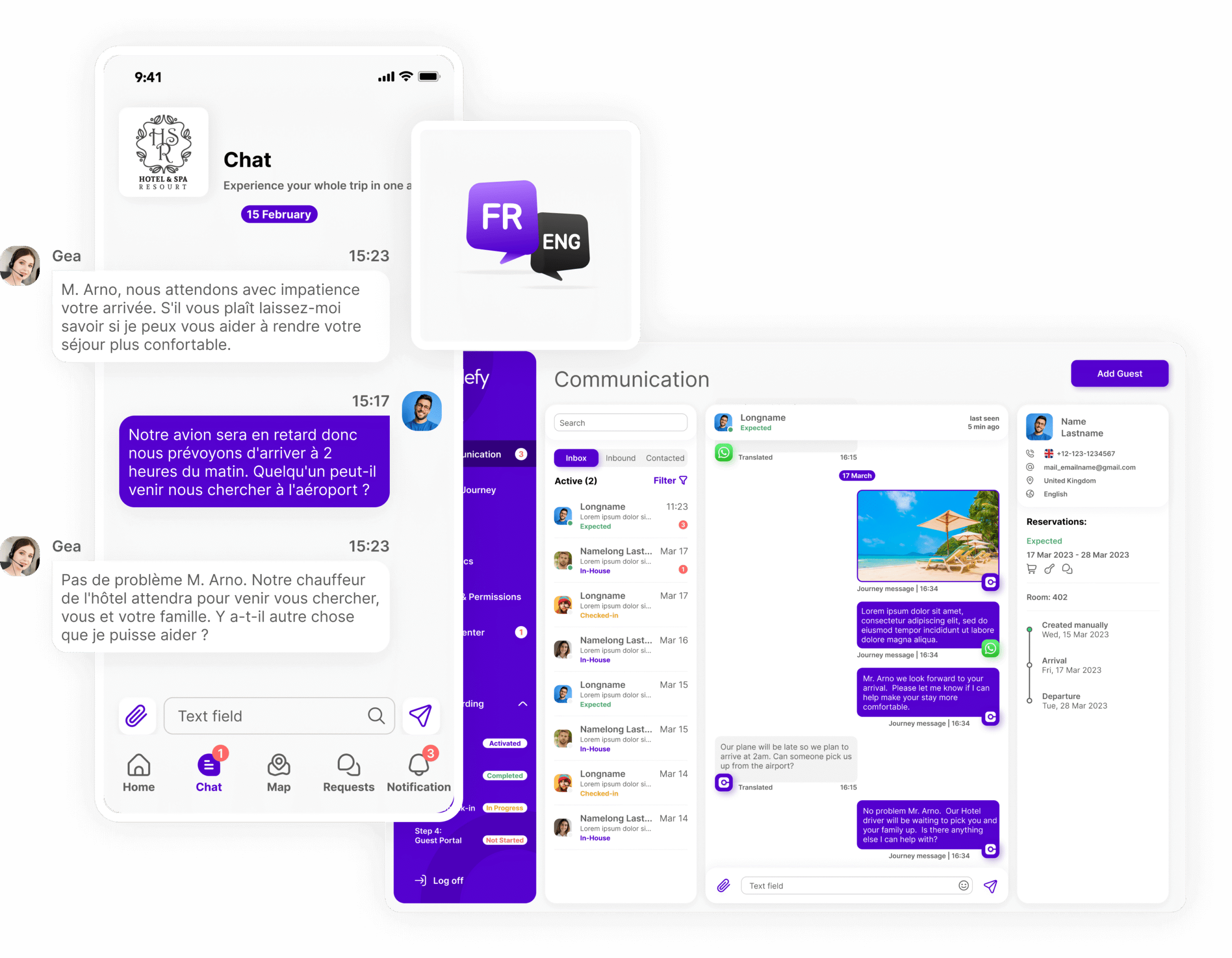 Η Ενοποιημένη Πλατφόρμα Μηνυμάτων της Radefy είναι το ιδανικό εργαλείο για το προσωπικό σας: προσφέρει πλήρη εικόνα του ιστορικού επικοινωνίας με κάθε επισκέπτη, ώστε να κατανοεί τις προτιμήσεις, να προβλέπει τις ανάγκες του και να του παρέχει εξατομικευμένες υπηρεσίες. Αυτό το επίπεδο προσωποποίησης αυξάνει την ικανοποίηση των επισκεπτών και ενισχύει τη φήμη του brand σας.