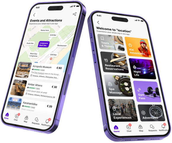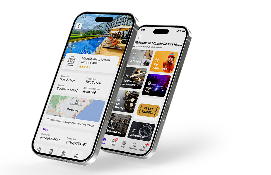 Αναβαθμίστε κάθε διαμονή με μια πλήρως προσαρμοσμένο στο brand σας web app για ξενοδοχεία, βίλες & ενοικιαζόμενα, που δίνει στους επισκέπτες σας άμεση πρόσβαση σε online check-in, είσοδο χωρίς κλειδί (keyless), ψηφιακό οδηγό, ενοποιημένη επικοινωνία, AI Βοηθό, τοπικές υπηρεσίες και τοπικές προτάσεις—ενώ ταυτόχρονα βελτιώνει τις αξιολογήσεις την αποδοτικότητα και αυξάνει τα έσοδα σας από πρόσθετες πωλήσεις (upsell) χωρίς κόπο.